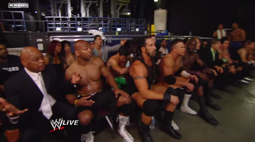 O show começa e vamos para os backstages aonde o roster está reunido.